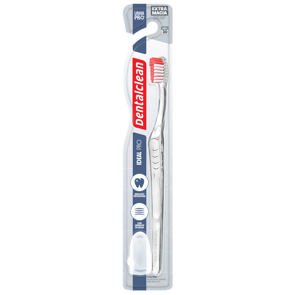 A Escova Ideal Pro é muito indicada pelos dentistas. Possui cerdas extra macias de pontas arredondadas, limpador de língua e cabo antibacteriano, o que faz dela o modelo ideal para uma escovação perfeita e sem riscos.