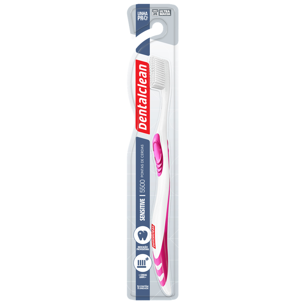 A escova de dente Dentalclean Sensitive Ultra Macia possui 5.500 pontas de cerdas ultra macias que limpam de forma eficaz e delicada, sem agredir a gengiva. É recomendada por profissionais para gengivas sensíveis, tratamentos pós cirúrgicos, problemas periodontais e para uso durante a gestação. Seu cabo anatômico e emborrachado oferece mais conforto e segurança ao escovar.